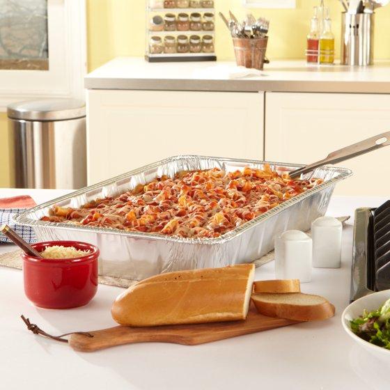 - Sturdy Construction—This extra large disposable pan features a sturdy and durable aluminum construction to hold heavy pasta dishes