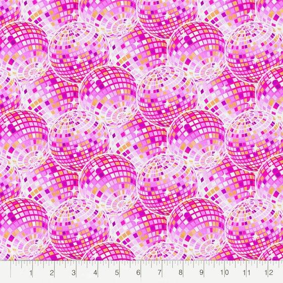 Fabric Editions 18" x 42" Cotton Disco Ball Half Yard Precut Sewing & Craft Fabric, Pink 1 Piece