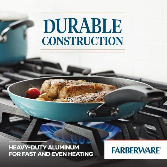 Farberware Easy Clean 12 Pcs Nonstick Cookware Set with Cooking Tools, Dishwasher Safe, Aqua
