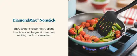 - SMOOTH RELEASE: High-quality DiamondMax™ nonstick provides superior food release that performs 3X better than traditional ceramic nonsticks