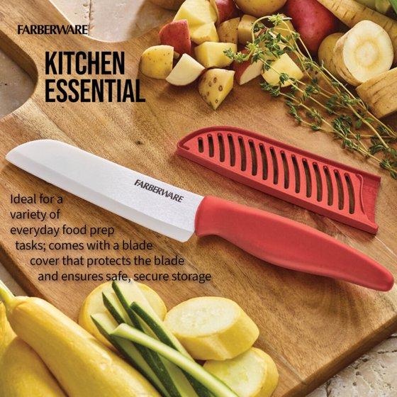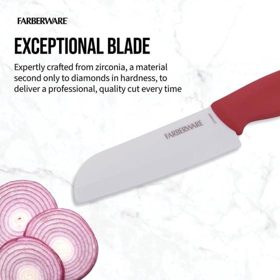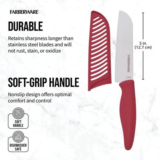 (2 pack) Farberware Professional 5-inch Ceramic Kitchen Santoku Knife in Red