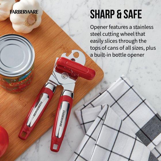 - Farberware Professional Can Opener with Built-in Bottle Opener in Red