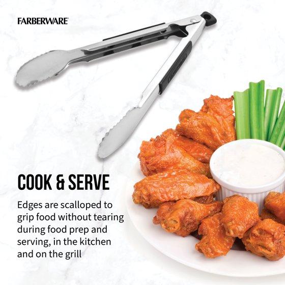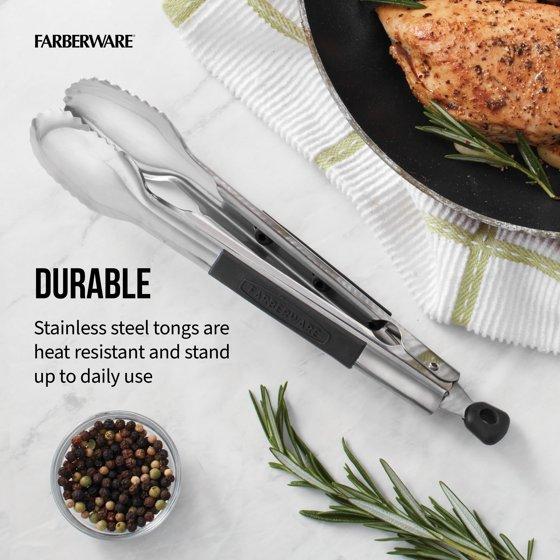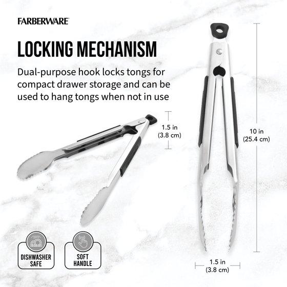 Farberware Soft-Grip Stainless Steel 9 in Locking Kitchen Food Tongs
