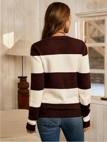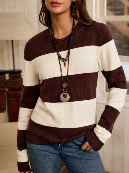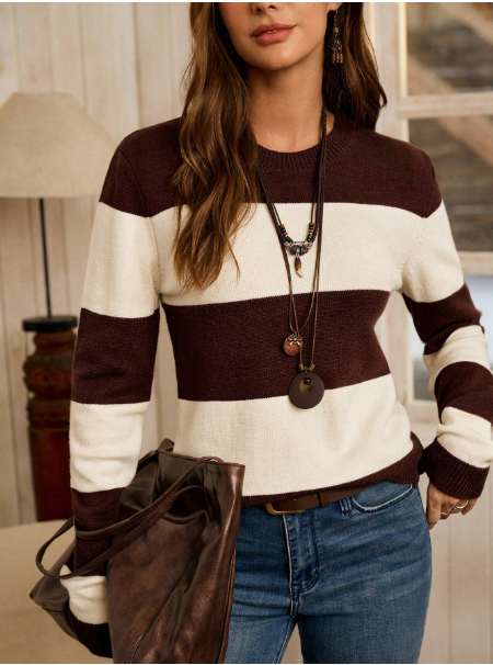 Fashionable & Elegant High-End Sweater, Long Sleeve Loose Knit Pullover Top For Women, Autumn/Winter