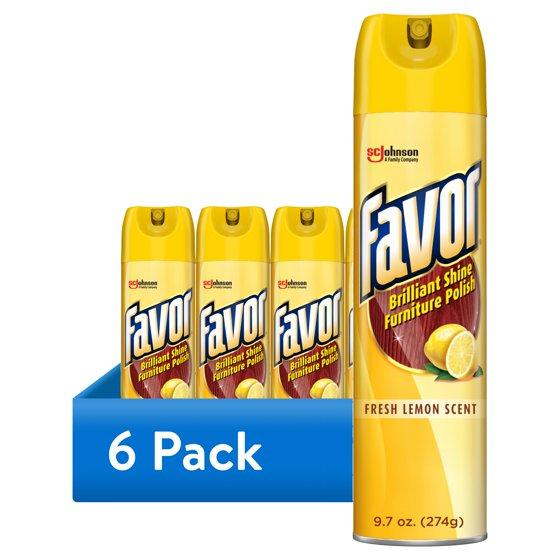 (6 pack) Favor Brilliant Shine Lemon Scent Furniture Polish, 9.7 fl oz