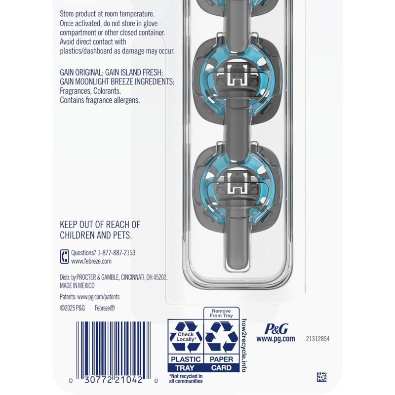 Get ready to hit the road, Gainiacs: This Febreze CAR Variety Pack keeps your ride smelling fresh-out-the-dryer with the uber-freshness of Gain Original Scent, Moonlight Breeze, and Island Fresh.