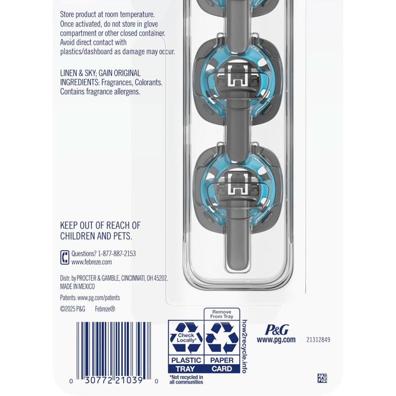 Go ahead and smell-ebrate, because your favorite Febreze CAR Vent Clip scents are together in one laundry-fresh pack, featuring the clean and crisp scent of Linen & Sky, and the citrus-y freshness of Gain Original.