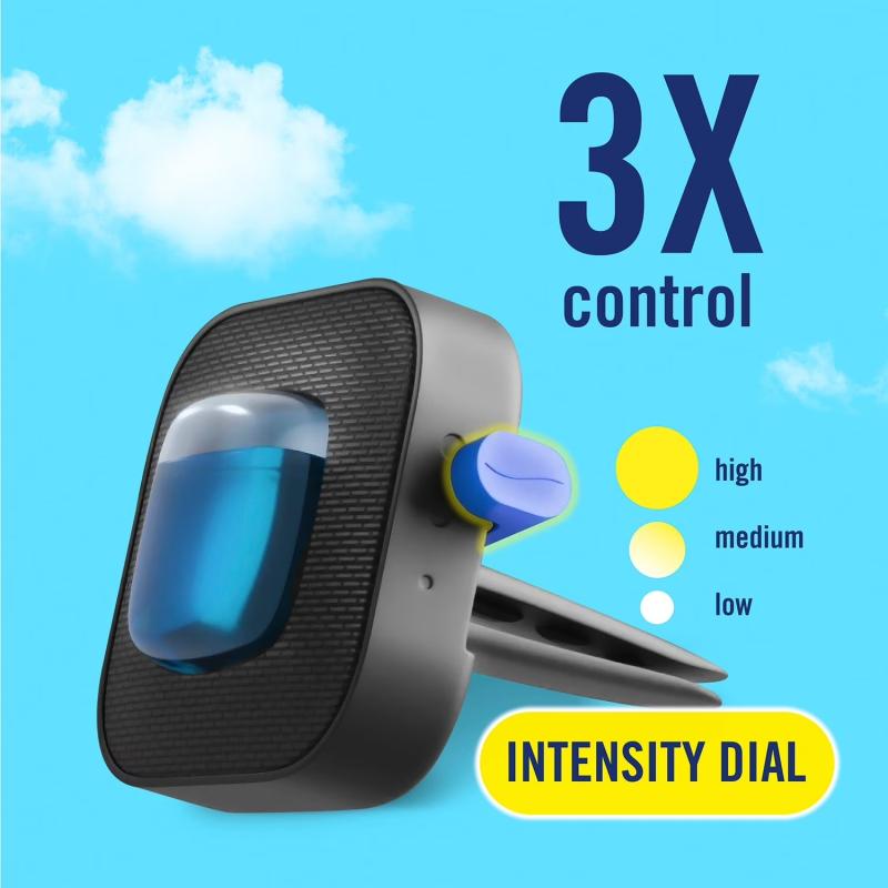 | Use Instructions | 1. Activate: To activate scent, firmly push clip up until you hear it click in place. 2. Clip: Then clip product to car vent. 3. Adjust: To control freshness, adjust scent intensity dial. |