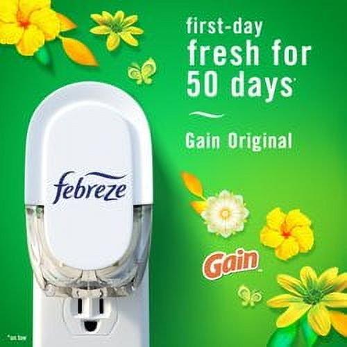 Febreze Plug In Air Freshener, Odor-Fighting Oil Kit, Gain Original, Warmer + 1 Refill