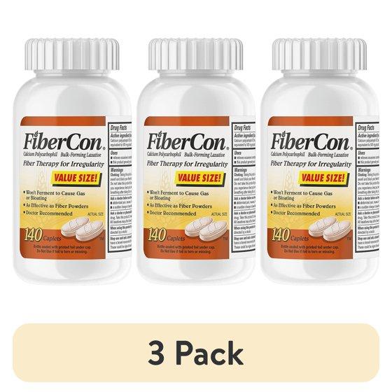 (3 pack) FiberCon Fiber Therapy Coated Caplets, Safe, Simple & Comfortable Insoluble Fiber for Bowel Irregularity, Comfortable Constipation Relief with No Gas or Bloating, 140 Caplets
