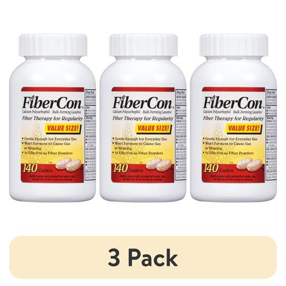 (3 pack) Fibercon Fiber Therapy for Regularity (Calcium Polycarbophil) Caplets 140 ct Bottle