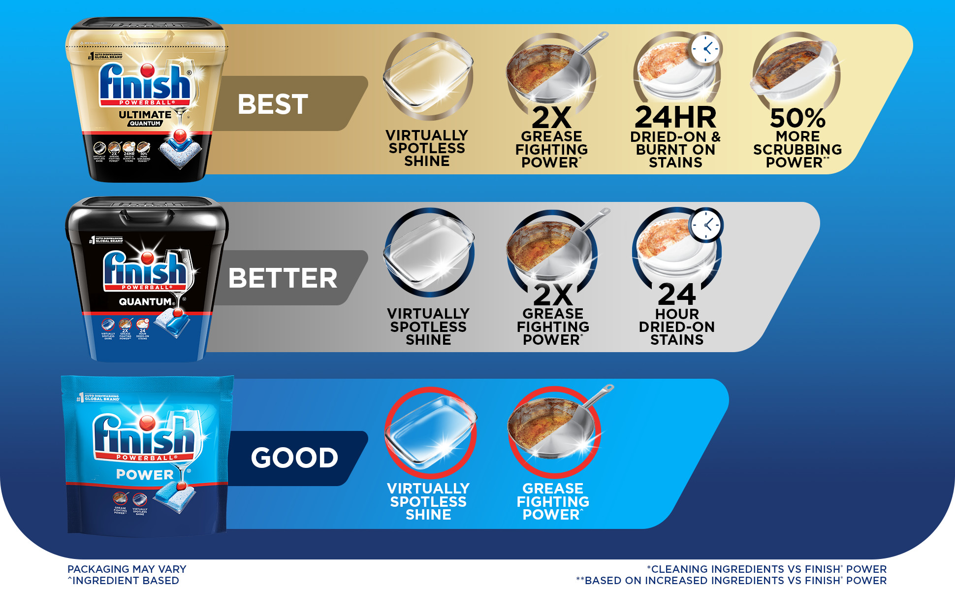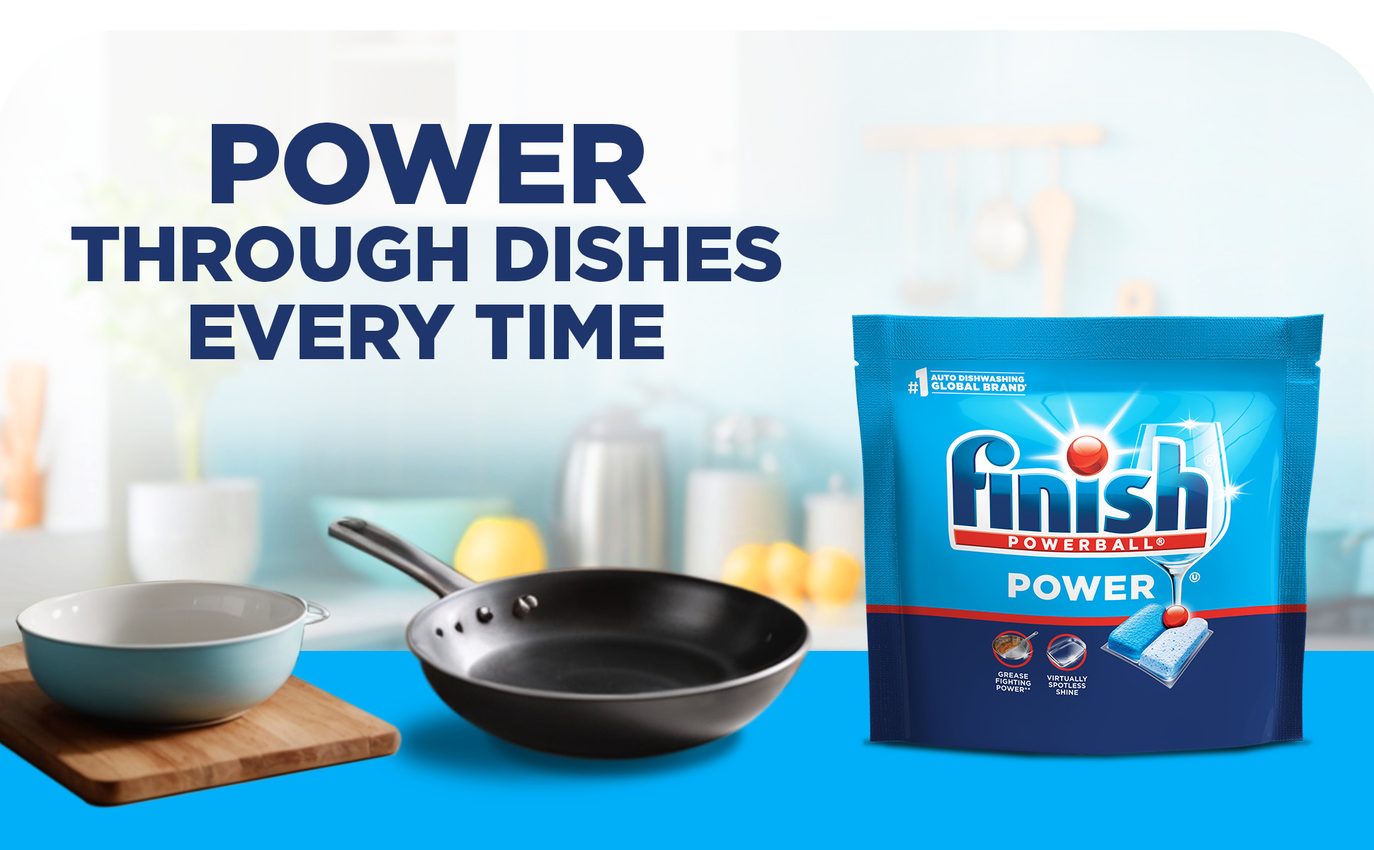 - EVERYDAY DISHWASHER PODS: Finish Power is great for tackling everyday greasy steel pans, wine glasses, plastic meal prep containers, glass storage containers, and more.