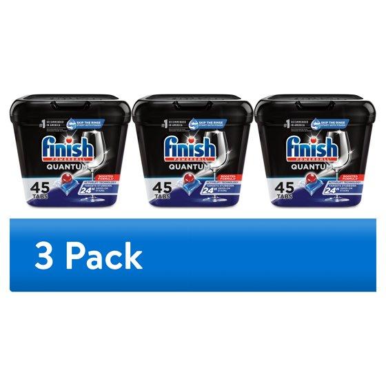 (3 pack) Finish Quantum Dishwasher Pods, No Pre-Rinse Dishwasher Detergent Tabs Soap, Advanced Clean, 45 Count