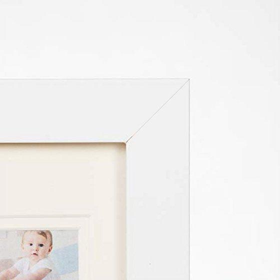 First Year Newborn Baby Collage Keepsake Picture Frame for Photo Memories with Double Beige Mat and Twelve 2.5x2.5 Slots - White