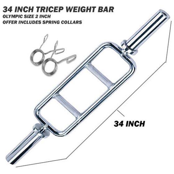 Fitness Maniac 34 inch Barbell Solid Olympic Chrome Tricep Hammer Curl Fitness Gym Weight Bar Home Gym Weightlifting Exercise Training Bars Powerlifting and Crossfit