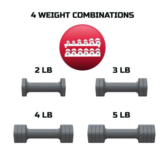 - Adjustable weight to accommodate various fitness levels and exercise types: 2, 3, 4, and 5lbs