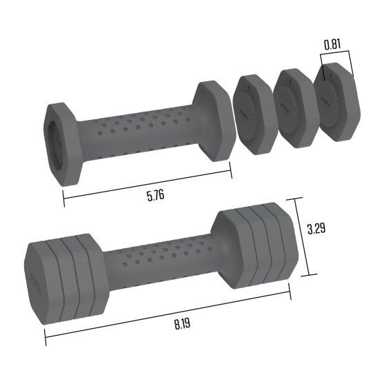 FitRx 5-Lb Adjustable Dumbbells 4-in-1 Hand Weights for Home Gym, Gray 2-Pack