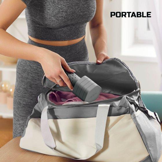 With its space-saving design, our hand weights are as compact as they come. Perfect for fitting into any corner of your home gym or even under your bed, these 5 lb dumbbells are designed to be where you need them, when you need them.