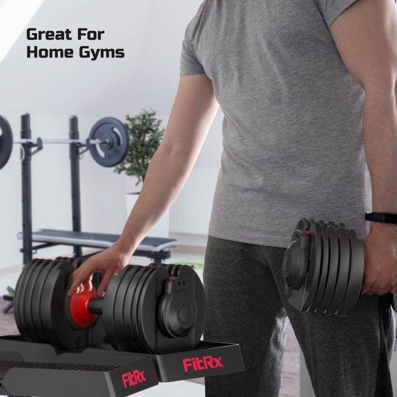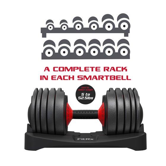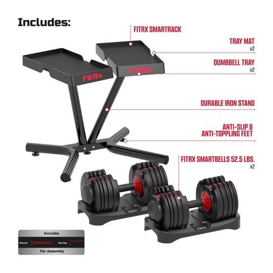 FitRx SmartRack and SmartBells Set, Dumbbell Weight Rack Stand with Two Quick-Select 5-52.5lbs Adjustable Dumbbells