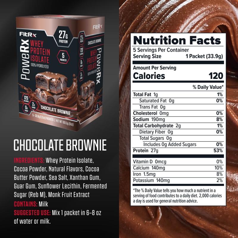 FitRx PoweRx Whey Protein Isolate – Chocolate Brownie High Protein Powder, 27g Whey Isolate, 0g Sugar, 5 Servings, 6 oz Total