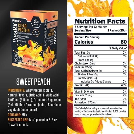 FitRx CleaRx Clear Sweet Peach Whey Protein 5 Packets - 20g