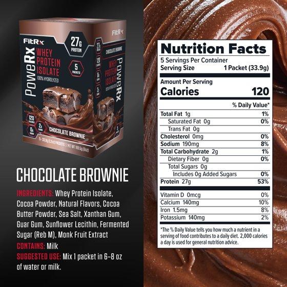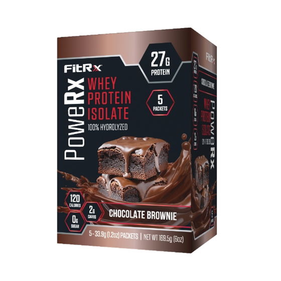 FitRx PoweRx Whey Protein Isolate – Chocolate Brownie High Protein Powder, 27g Whey Isolate, 0g Sugar, 5 Servings, 6 oz Total