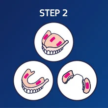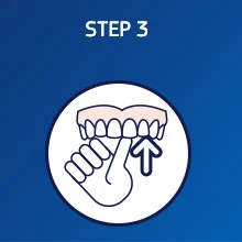 3. Insert your denture and briefly hold it in place. If you notice oozing, then too much adhesive was applied.