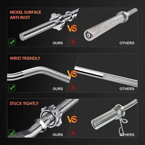 - 【Plate Compatibility And Suitability】–This excellent weight bar is designed to offer maximized comfort during biceps, triceps, and forearm training. Its design allows you to customize your upper body workout according to your skill level.