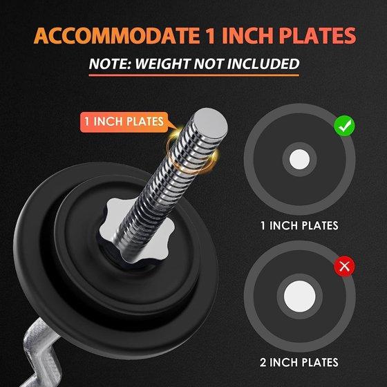 - 【Plate Compatibility And Suitability】– This gym equipment is compatible with 1” standard weight plates without the risk of collapsing or breaking. Its loading sleeves allow user to add more weights (max capacity 200 lbs.) for maximum strength training.
