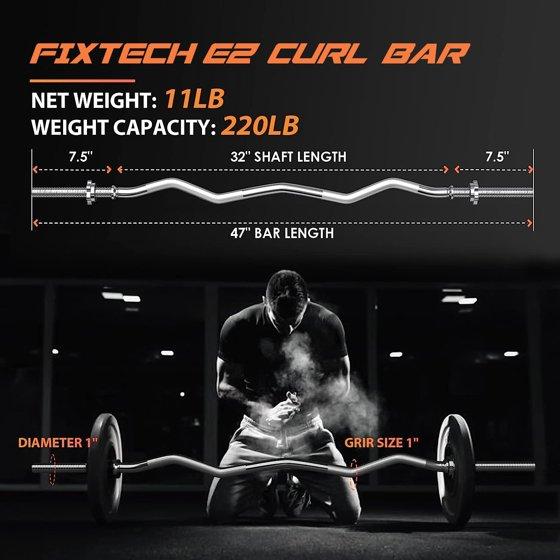 FIXTECH 47'' Curl Bar with Collars for All Standard 1" Plates, 440-Pound Capacity, Silver