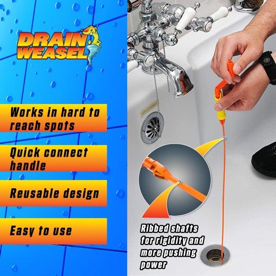 FlexiSnake Drain Weasel Pro Snake Hair Clog Remover, Starter Kit 2 Pack