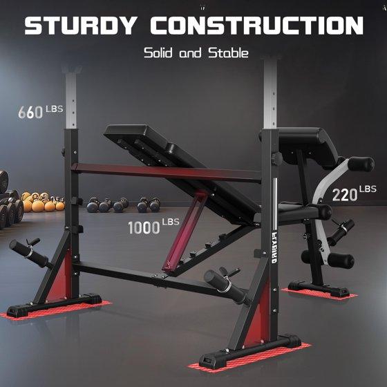 FLYBIRD Olympic Weight Bench - Adjustable Press with Rack, Leg Developer & Preacher Curl (1000Lbs/2025)
