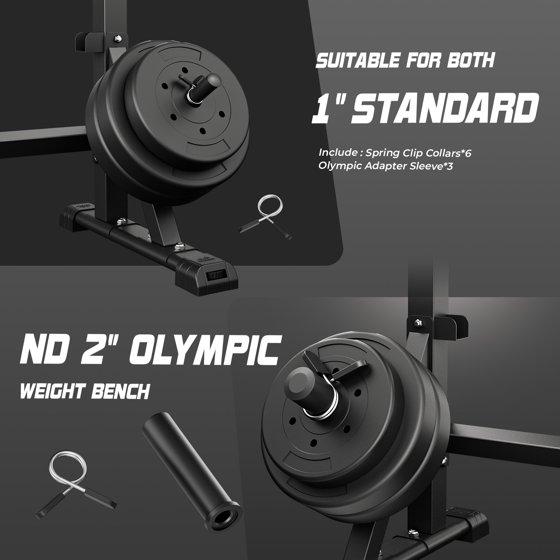 - 【Pro Olympic Squat Rack】Heavy-duty 47" steel frame supports 1000+ lbs with 2" Olympic sleeves for standard barbells. Features adjustable multi-grip pull-up bar (28"-42") for optimal shoulder positioning.