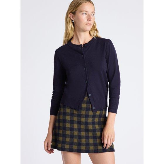 Free Assembly Women's and Women's Plus Solid, Stripe, & Print Classic Cozy Yarn Cardigan Sweater, Lightweight, Sizes XS-4X