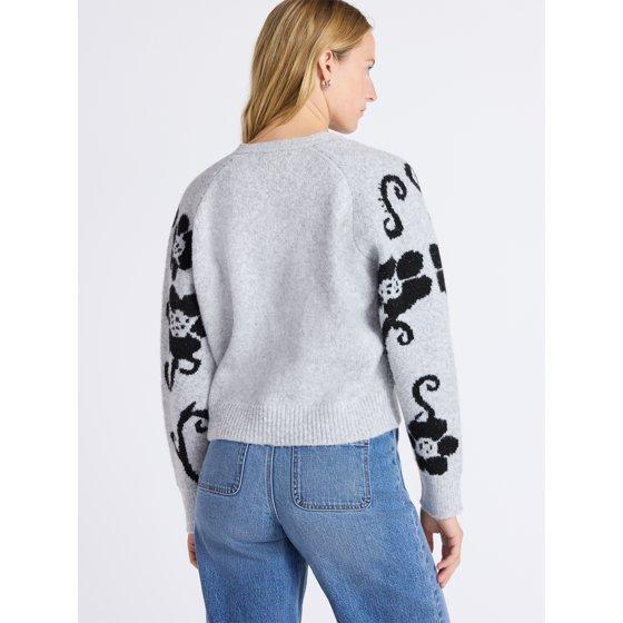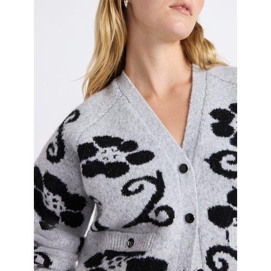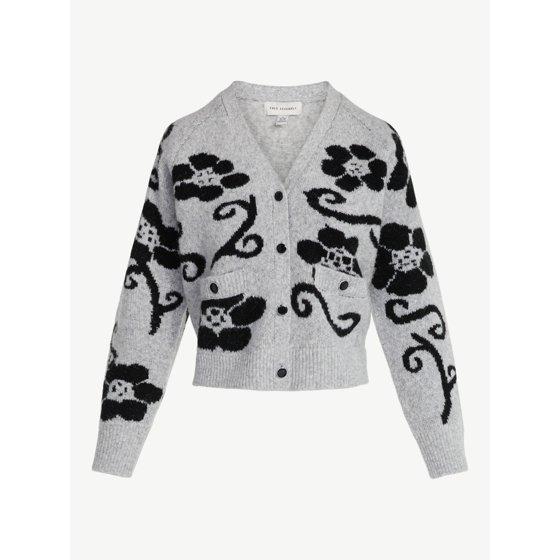 Free Assembly Women’s Floral Pattern V-Neck Cardigan Sweater, Midweight, Sizes XS-XXL