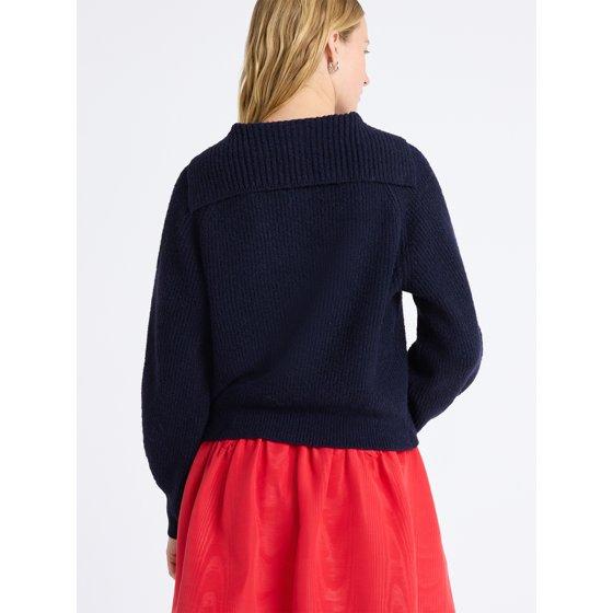 Free Assembly Women's V-Collar Sweater with Long Sleeves, Midweight, Sizes, XS-XXL
