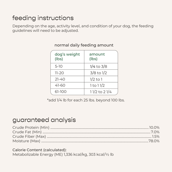 Chicken, Chicken Broth, Chicken Liver, Spinach, Potatoes, Egg, Pea Fiber, Carrageenan, Natural Flavors, Potassium Chloride, Celery Powder, Minerals (Zinc Proteinate, Iron Proteinate, Copper Proteinate, Manganese Proteinate, Sodium Selenite, Calcium Iodate), Salt, Vitamins (Choline Chloride, Vitamin E Supplement, Riboflavin, Biotin, Calcium Pantothenate, Niacin, Thiamine Mononitrate, Vitamin B12 Supplement, Pyridoxine Hydrochloride, Folic Acid).