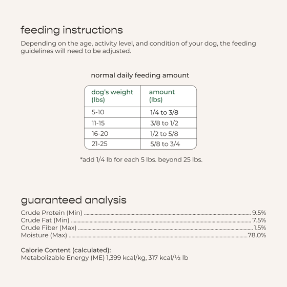 Chicken, Chicken Liver, Carrots, Pea Protein, Eggs, Cranberries, Natural Flavors, Pea Fiber, Vinegar, Minerals (Dicalcium Phosphate, Zinc Proteinate, Iron Proteinate, Manganese Proteinate, Copper Proteinate, Sodium Selenite, Calcium Iodate), Salt, Spinach, Potassium Chloride, Inulin, Fish Oil, Beta-Carotene, Celery Powder, Vitamins (Choline Chloride, Vitamin E Supplement, Niacin, Calcium Pantothenate, Biotin, Riboflavin, Thiamine Mononitrate, Vitamin B12 Supplement, Pyridoxine Hydrochloride, Folic Acid).