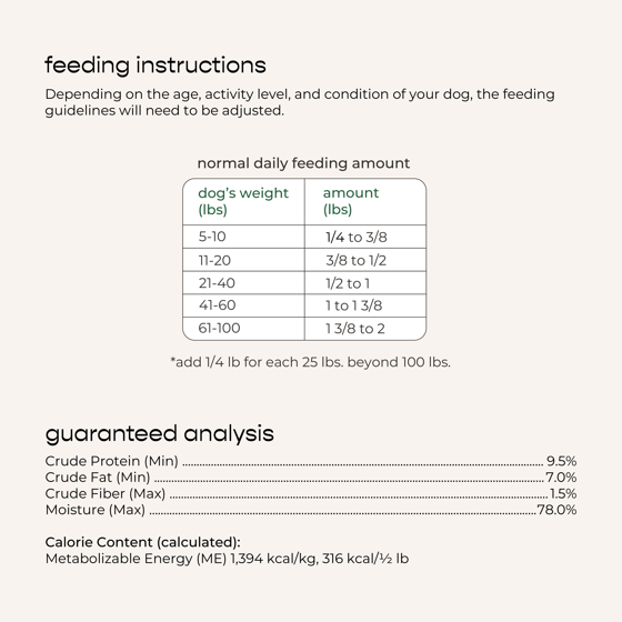 Chicken, Carrots, Chicken Broth, Peas, Egg, Chicken Liver, Brown Rice, Rice Bran, Carrageenan, Natural Flavors, Potassium Chloride, Celery Powder, Minerals (Zinc Proteinate, Iron Proteinate, Copper Proteinate, Manganese Proteinate, Sodium Selenite, Calcium Iodate), Salt, Vitamins (Choline Chloride, Vitamin E Supplement, Riboflavin, Biotin, Calcium Pantothenate, Niacin, Thiamine Mononitrate, Vitamin B12 Supplement, Pyridoxine Hydrochloride, Folic Acid), Spinach.