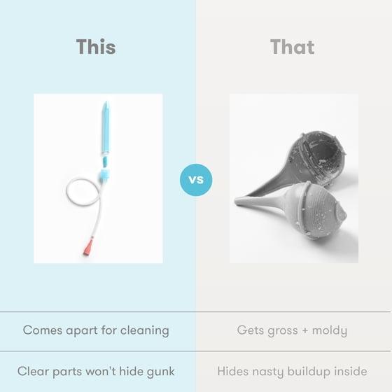 Doctor invented and recommended. Made in Sweden, the Frida Baby Nose Frida Snot Sucker Nasal Aspirator for Baby Nasal Congestion is your go-to natural, hygienic baby booger buster. It's totally safe (for parents AND baby), so you can say "sayonara" to snotty noses.