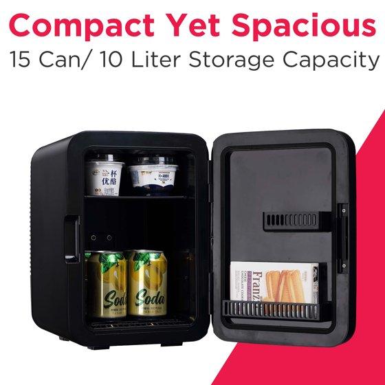 - Ample Capacity: This mini fridge can hold up to 15 cans or 10 liters of your favorite items
