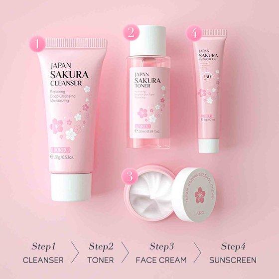 FSTDelivery Up to 50% Off! Travel Set 4-piece Facial Care Moisturizing Face Cream Serum Lotion Facial Cleanser 80ml Christmas Gifts for Women