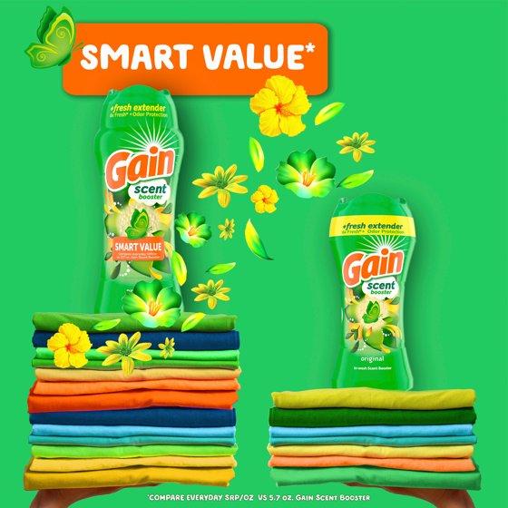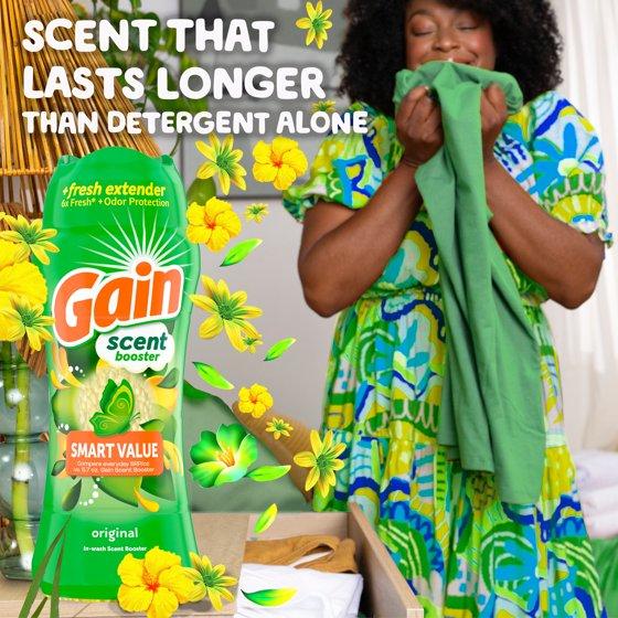 - Includes one 13.2 OZ bottle of Gain In-Wash Laundry Scent Booster in Original Scent