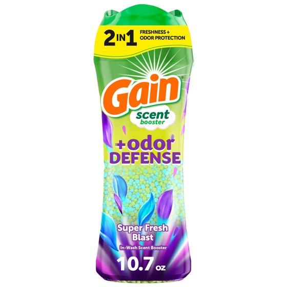 - Includes one 10.7 OZ bottle of Gain Odor Defense In-wash Scent Booster in Super Fresh Blast scent