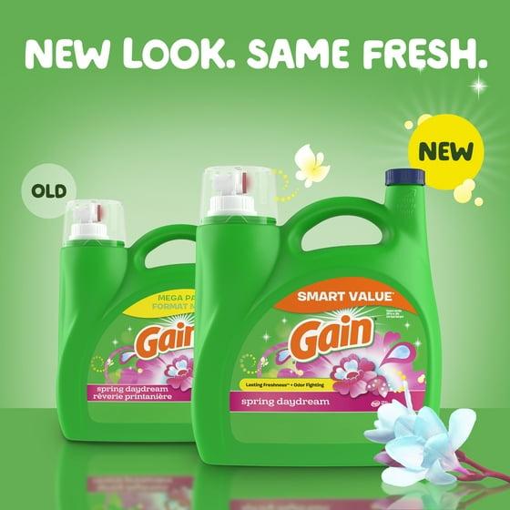 Experience the power of Gain Spring Daydream Laundry Detergent Liquid, your ultimate laundry solution. This liquid laundry detergent is designed to lift away dirt while locking in an amazing scent that lasts up to six weeks from wash until wear. Have you ever fantasized about floating down a sparkling stream, surrounded on all sides by the inspiring scent of nature coming back to life? Welcome to Spring Daydream. Your nose will be spellbound by the scent of tiny blooms sprinkled with morning dew. Enjoy this imaginary trip through springtime and let nature take you away. With its great cleaning power, this laundry soap not only smells fantastic but also cleans exceptionally well, providing you with excellent results wash after wash. Whether you're using regular or high-efficiency washers, this laundry detergent liquid delivers excellent results even in cold water. Simply measure out your desired level and pour into the compartment or drum. Take your laundry experience to the next level when you dive nose first into the world of Gain! Gain is the only laundry brand that can give you the same scent throughout the entire wash process! Whether you’re sniffing around for a detergent, a fabric softener, scent boosters, or dryer sheets, we have the scents you’ll swoon over, especially when you use the same scent from start to finish! Includes one 154 fl oz jug of Gain Liquid Laundry Detergent in a Spring Daydream scent, good for 107 loads.