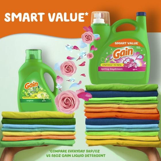 - Includes one 154 fl oz jug of Gain Liquid Laundry Detergent in a Spring Daydream scent, good for 107 loads
