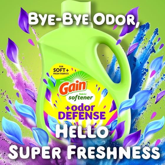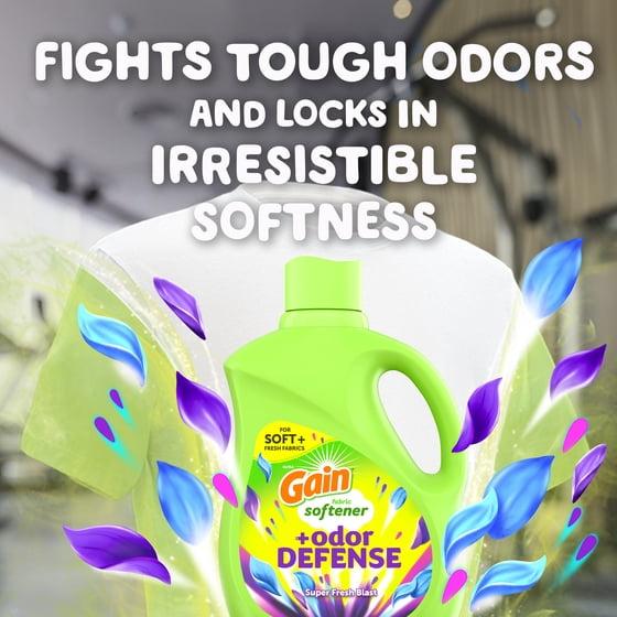 - OH SO COMFY: Use Gain Odor Defense 2-in-1 Liquid Softener for laundry that feels as good as it smells