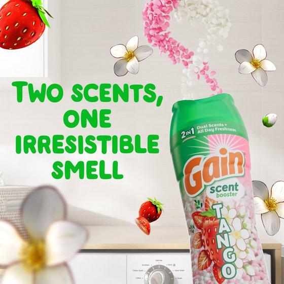 - Includes one 4.8 oz bottle of Gain Tango 2-in-1 Dual Scent In-Wash Laundry Scent Booster Beads in the Strawberry and Shea Scent