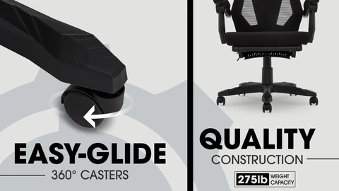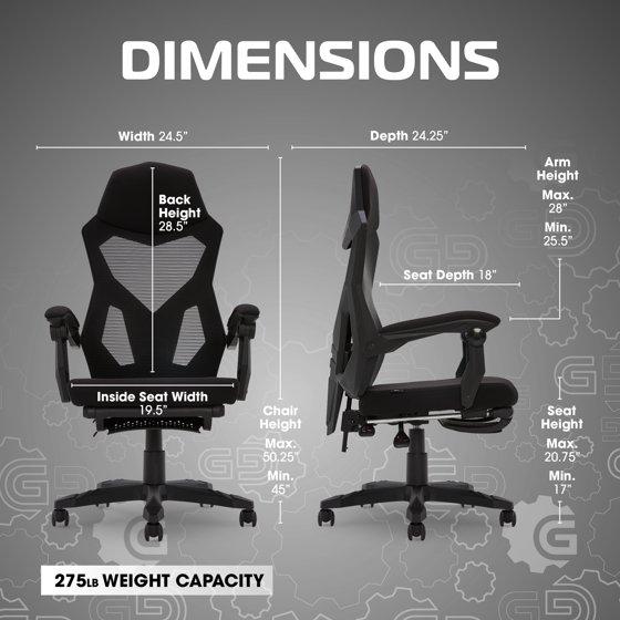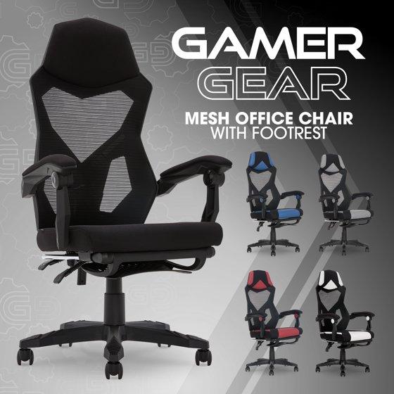 Gamer Gear Gaming Office Chair with Extendable Leg Rest, Black Fabric Upholstery