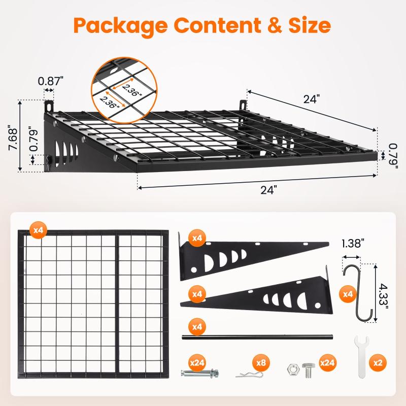 - 【All-in-One Mesh Storage】:The seamless welded mesh design securely holds tires, sports gear, toolboxes, and plastic bins without sagging. Open-grid airflow prevents dust buildup, while the anti-rust coating ensures durability in humid garage environments.